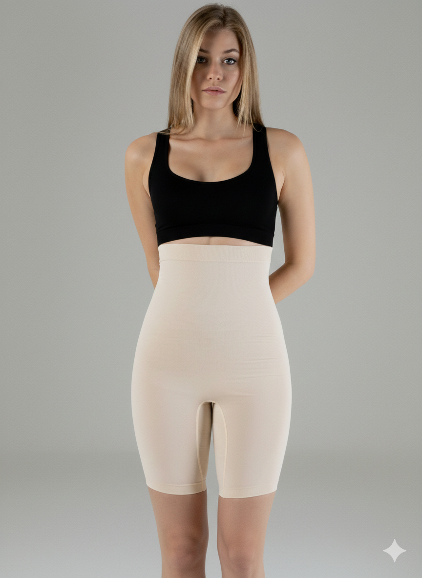 Short gainant taille très haute avec technologie Anti-Slide®. Sculpte le ventre, la taille, les hanches et les cuisses en une seule pièce. Sans coutures et invisible. Made in Turkey.